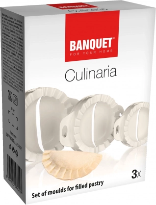 Zestaw plastikowych foremek do nadziewanych pierogów CULINARIA. Opakowanie zawiera 3 sztuki o średnicy 8, 10 i 12 cm. Zestaw jest praktycznym pomocnikiem przy przygotowywaniu ulubionych przysmaków.