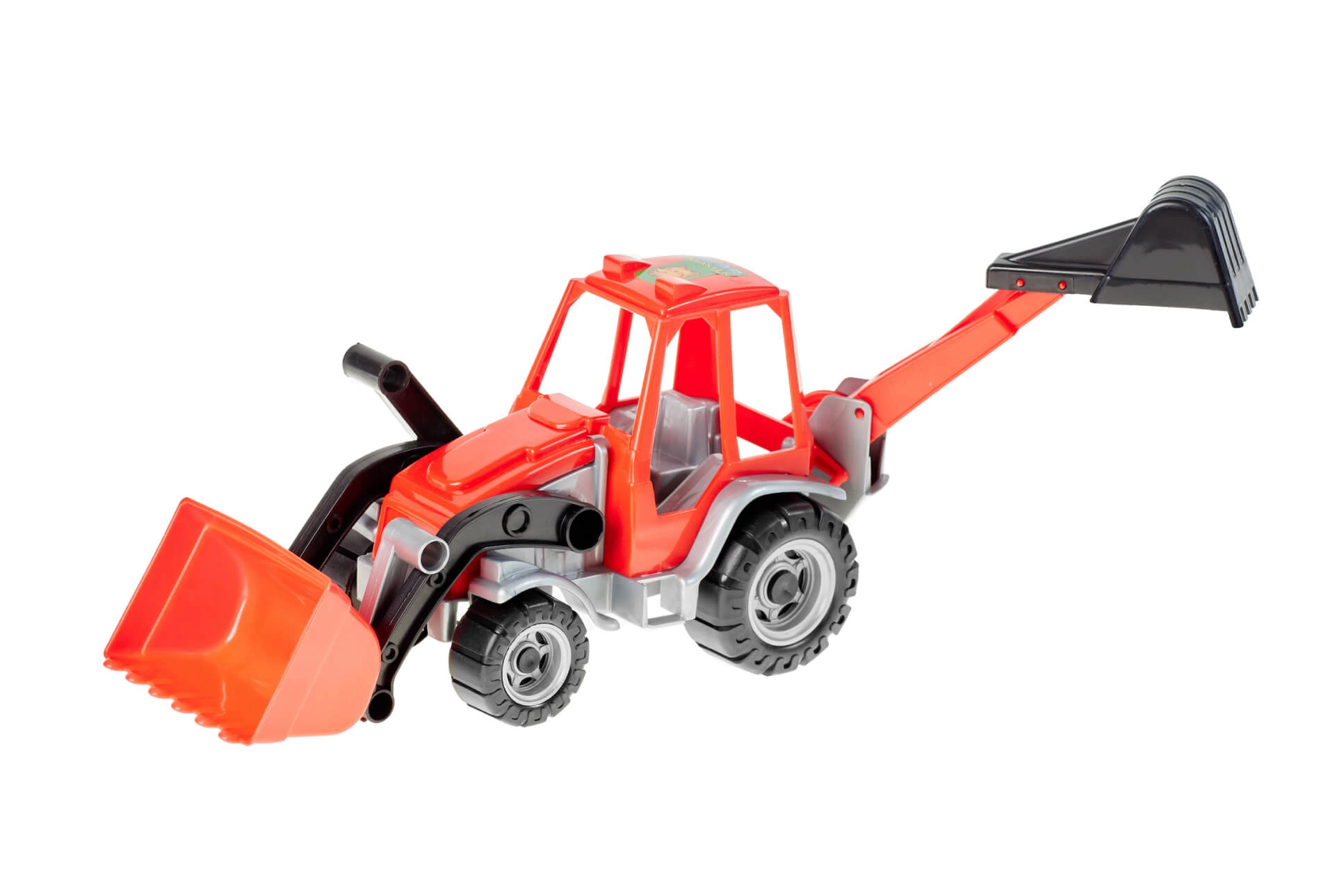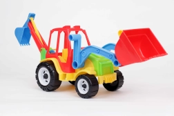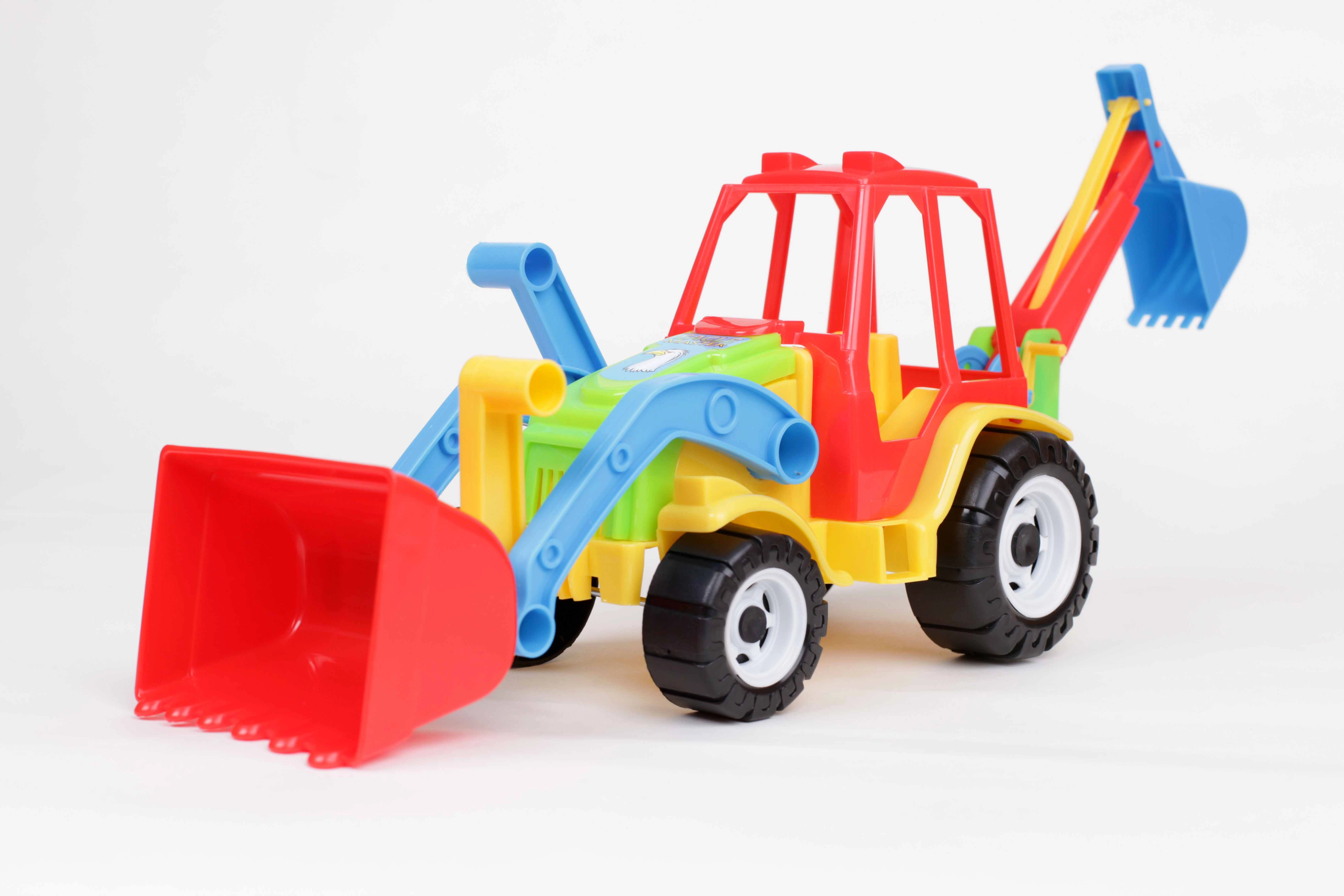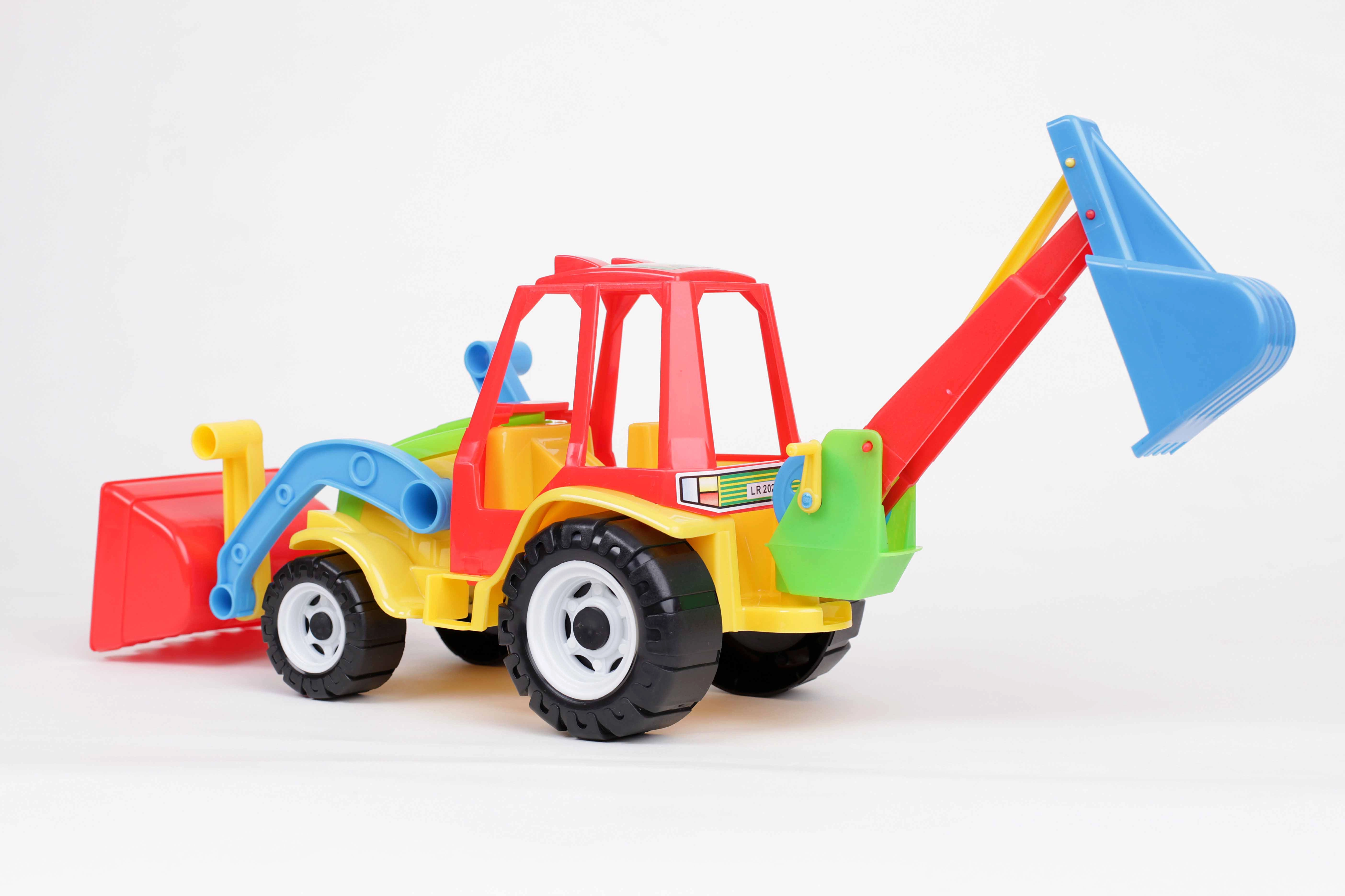 Przednia duża łyżka i tylne ramię kopiące pozwalają dzieciom ładować, przenosić i kopać – idealne do kreatywnych zabaw budowlanych.