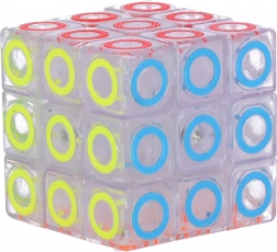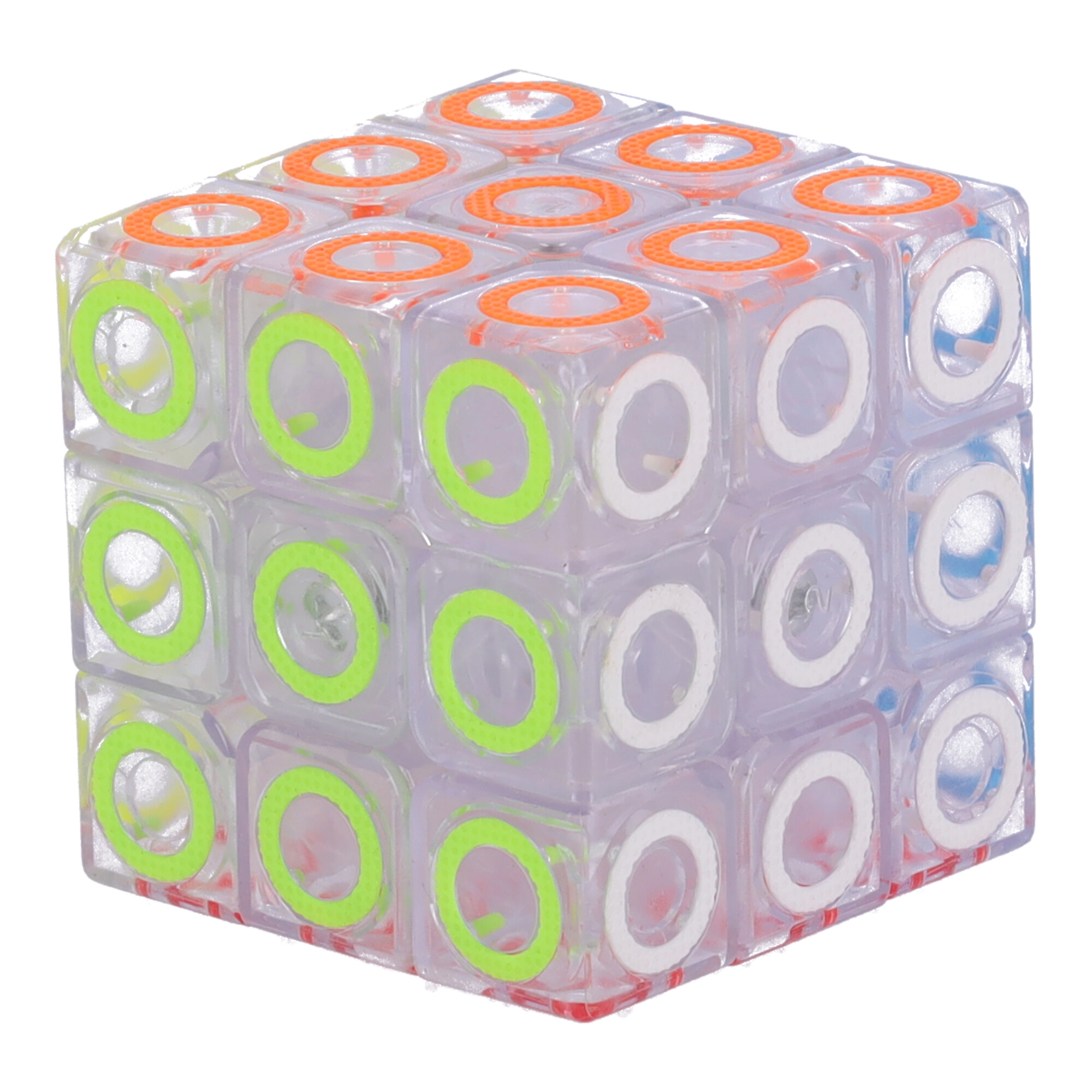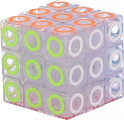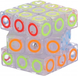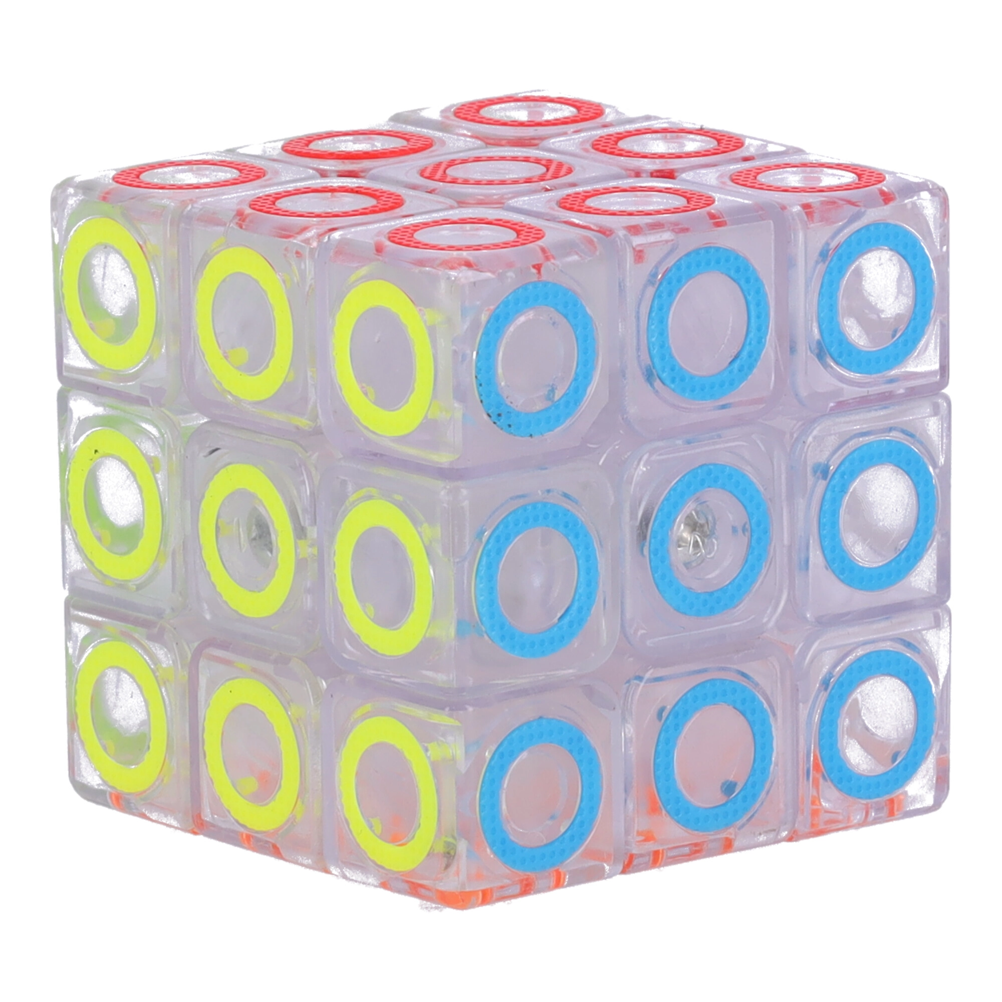 Przezroczyste korpus z kolorowymi pierścieniami nadaje kostce nowoczesny wygląd i ułatwia orientację podczas układania.