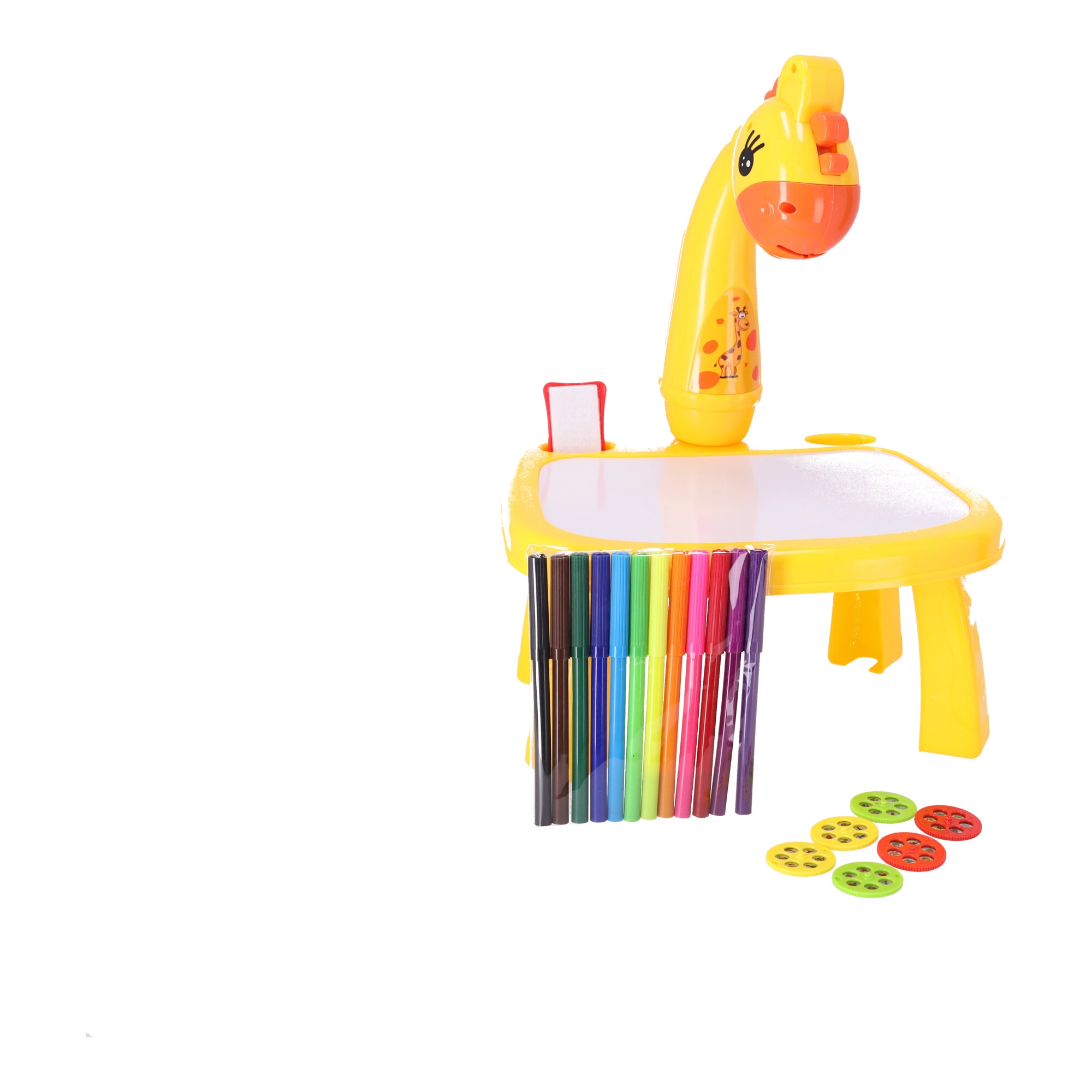 Ten dziecięcy projektor do rysowania wyświetla obrazki bezpośrednio na powierzchni do rysowania, dzięki czemu dziecko wybiera motyw, odrysowuje go, a następnie koloruje. Nauka odbywa się poprzez zabawę – dzieci ćwiczą chwyt pisaka, prowadzenie linii i rozpoznawanie kolorów. Stabilny stolik z żyrafią głową jest lekki i przenośny, więc sprawdzi się w domu i w podróży.