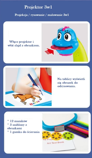 Multifunkcyjny projektor / rzutnik do nauki rysowania – niebieski dinozaur