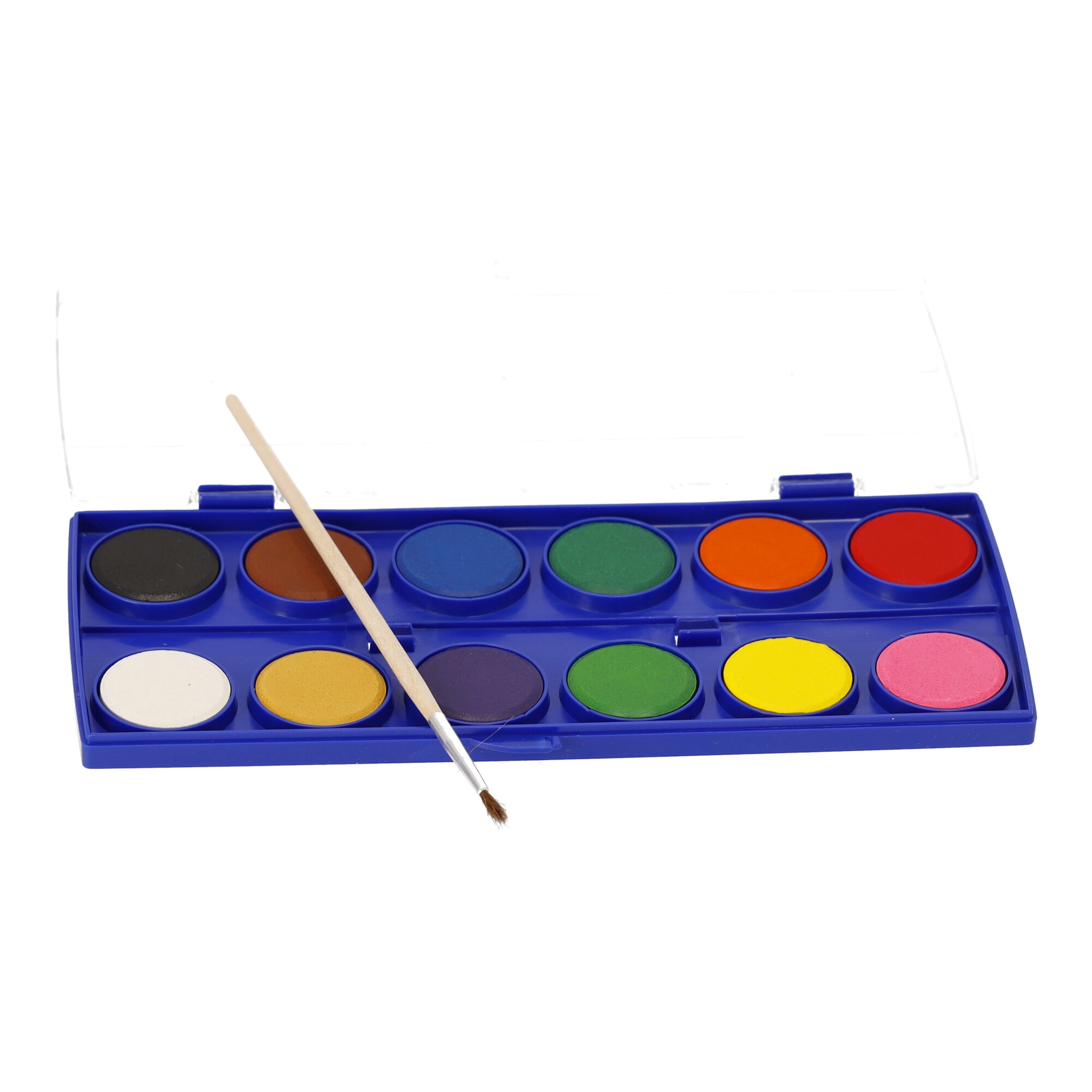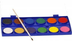 Farby wodne to farby na bazie wody, używane do malowania na papierze. W zestawie znajduje się pędzelek.