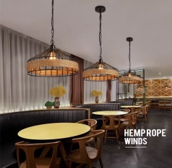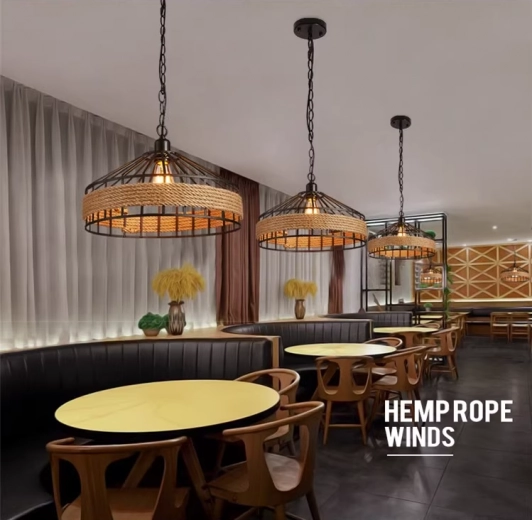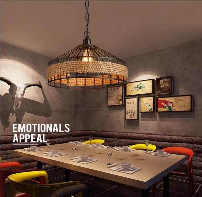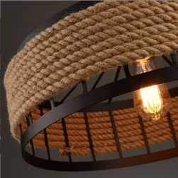Ta lampa sufitowa łączy styl vintage z nowoczesnymi detalami i będzie doskonałą dekoracją do salonu lub jadalni, szczególnie jako oświetlenie nad stołem, ławą lub barem. Dzięki oryginalnemu wzornictwu i solidnemu wykonaniu z metalu i konopnego sznura sprawdzi się także w nowoczesnych restauracjach, hotelach, kawiarniach i barach. Zawieszona jest na ⚓ oryginalnym łańcuchu i ma standardowy gwint E27 na żarówkę.