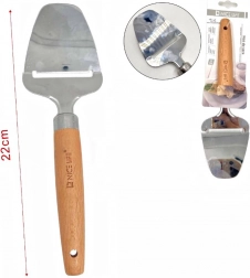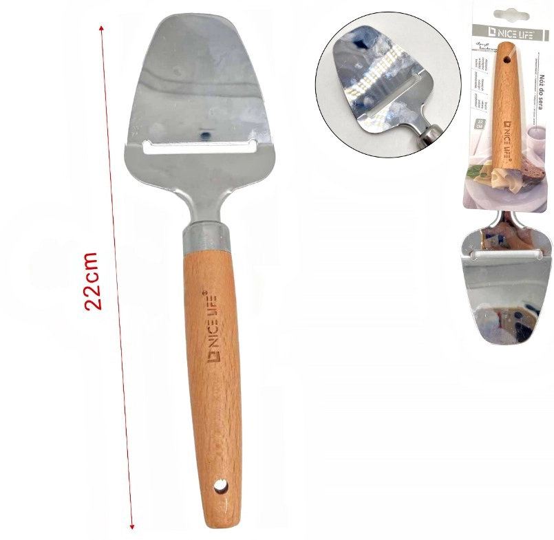 Krajalnica pozwala kroić ser na równe kawałki. Niezastąpione narzędzie w każdej kuchni. Praktyczny i funkcjonalny produkt, bez którego wiele czynności byłoby trudniejszych. Nóż ma ostrze, które poradzi sobie z każdym rodzajem sera. Nóż jest bezpieczny i praktyczny. Krajalnica jest wykonana ze stali nierdzewnej, a rękojeść jest drewniana.