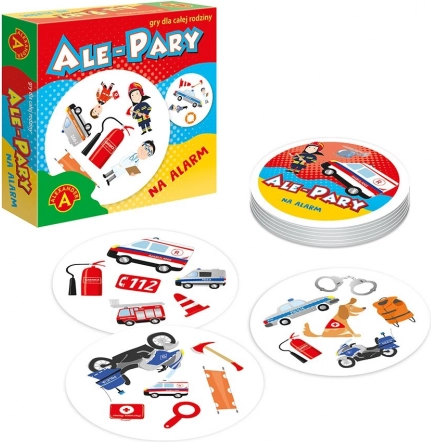 Gra Alexander – Ale pary na alarm dostarcza dynamicznej rozrywki dla całej rodziny. Jest łatwa do wytłumaczenia, szybka w rozgrywce i doskonale trenuje spostrzegawczość, koncentrację i szybkie reakcje. Na 31 okrągłych kartach z motywami policji, służb ratunkowych i straży pożarnej zawsze znajduje się dokładnie jeden wspólny symbol, który musisz odnaleźć szybciej niż przeciwnicy.