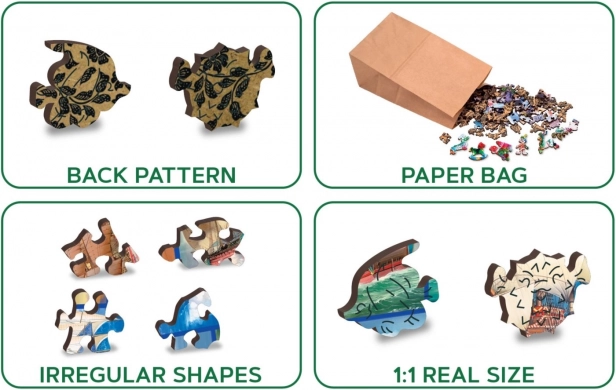 Dla dbałości o ekologię puzzle zapakowano w papierowy woreczek umieszczony w papierowym pudełku, co czyni je idealnym prezentem na każdą okazję.