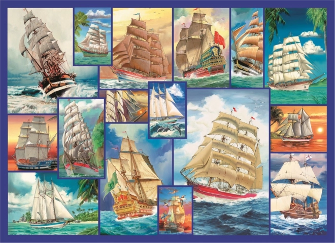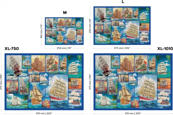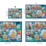 Możliwość układania zarówno według obrazu, jak i kształtu, z motywem żaglowców po jednej stronie oraz powtarzalnym wzorem po drugiej.