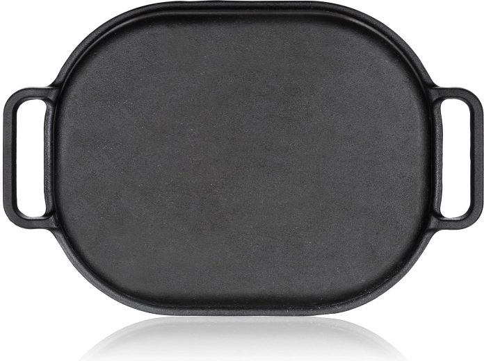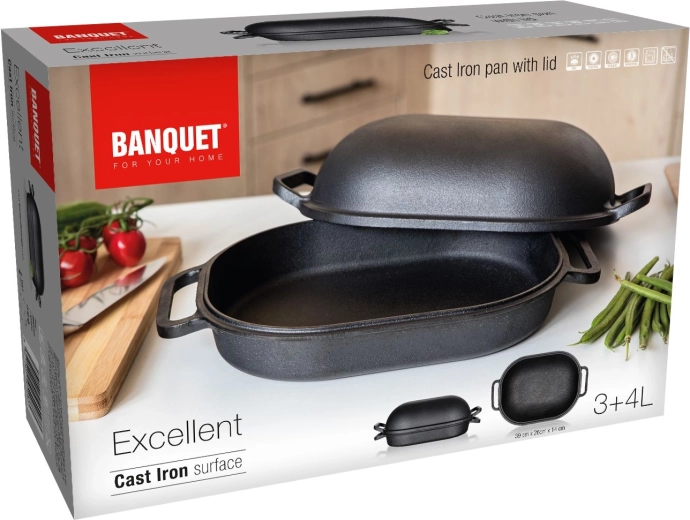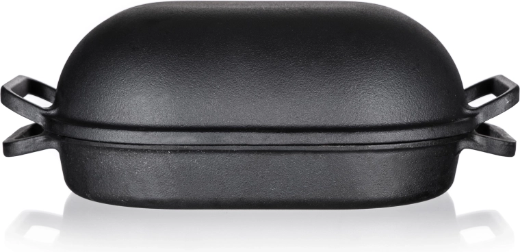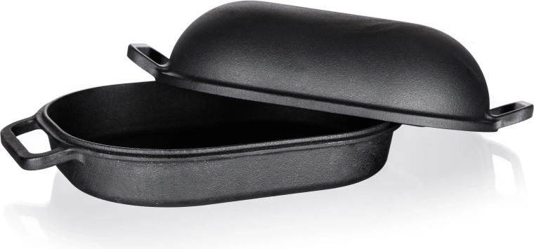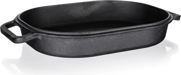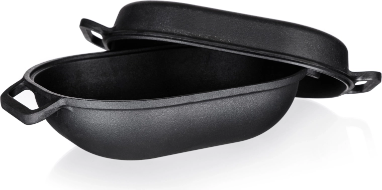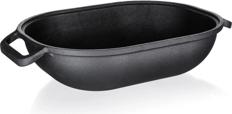 Poznaj magię tradycyjnego gotowania z owalną żeliwną brytfanną z pokrywką. Z pojemnością 3 + 4 litry i wymiarami 39 x 26 x 14 cm jest idealnym wyborem do soczystego pieczenia, duszenia i smażenia. Żeliwny materiał słynie ze znakomitej zdolności utrzymywania i równomiernego rozprowadzania ciepła, co gwarantuje świetne rezultaty przy każdym użyciu.