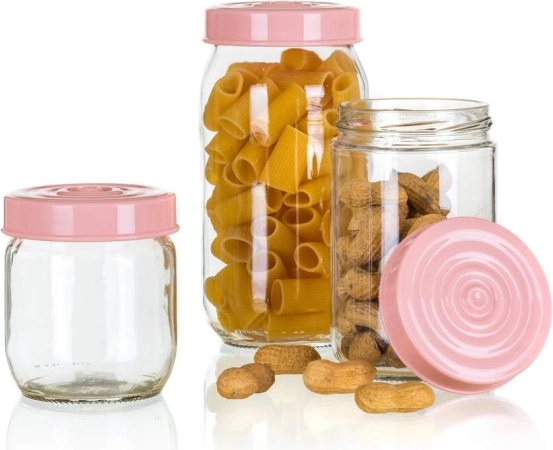 LINZI 3 szt. szklanych pojemników, różowy