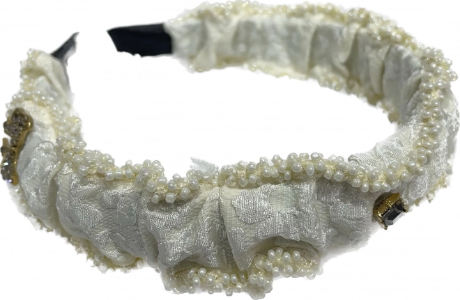 Elegancka opaska z białymi koralikami i teksturowanym wzorem doda Twojemu stylowi ekskluzywnego charakteru.