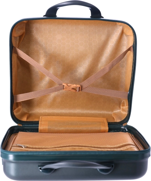 Ta podróżna kosmetyczka wykonana jest z tworzywa ABS. Do bardzo pojemnego kuferka toaletowego zmieszczą się nie tylko duże kosmetyki, takie jak szampon, odżywka, toniki, lakier do włosów, ale także suszarka, prostownica i inne akcesoria niezbędne w podróży. Funkcjonalny model jest wyposażony w uchwyt do łatwego przenoszenia kosmetyczki.