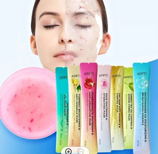 RÓŻOWA WYBIELAJĄCA I NAWILŻAJĄCA MASKA PRZEZROCZYSTY NAWILŻAJĄCY PROSZEK