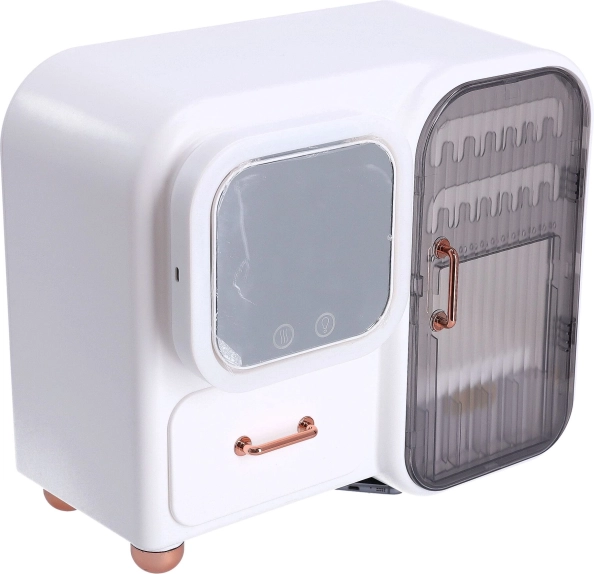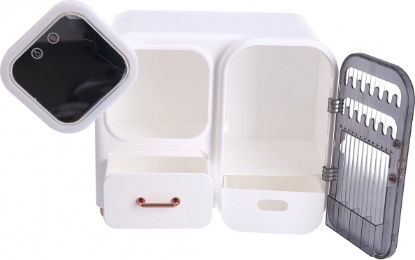 Ten elegancki organizer oferuje głębokie przestrzenie do przechowywania, które umożliwiają przejrzyste składowanie kosmetyków i biżuterii. Szuflady są wyjątkowo pojemne i pozwalają przechowywać codzienne kosmetyki, takie jak kremy, podkłady czy pomadki.