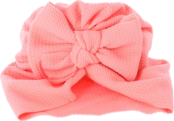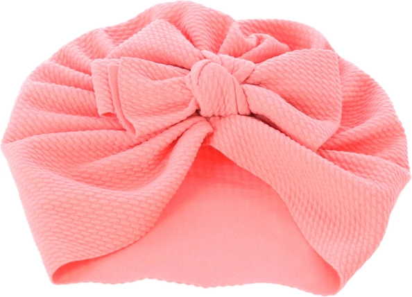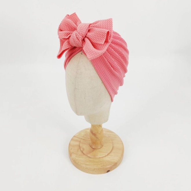 Dziecięcy turban z kokardą, dziewczęcy kapelusik - różowy