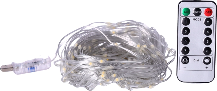 - długość zestawu: 150 szt.: Zestaw zawiera programator umożliwiający łatwe przełączanie między różnymi trybami świecenia: