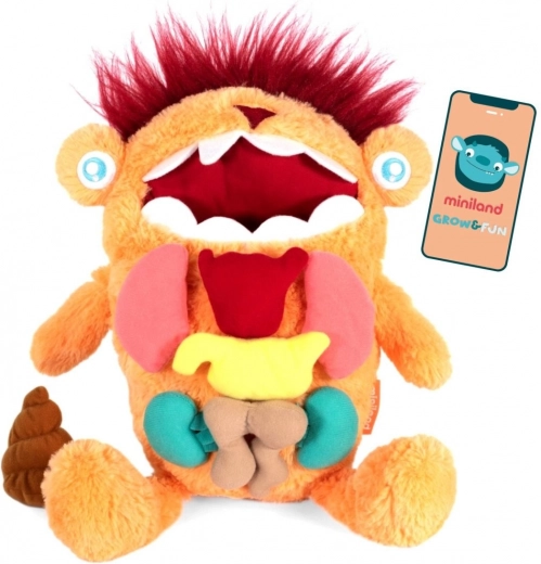 Ta duża maskotkowa potworka ma pięć organów z miękkiego, gładkiego materiału w przyjaznych kolorach: serce, płuca, nerki, żołądek, jelita, a nawet kupkę!