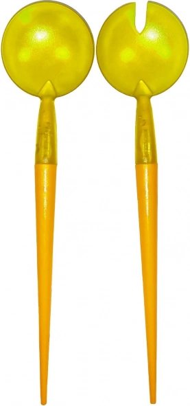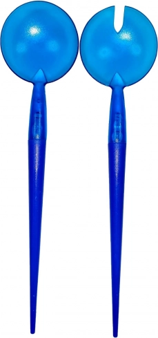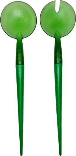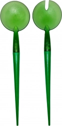 Zestaw dwóch łyżek do sałatek wykonanych z wysokiej jakości plastiku.