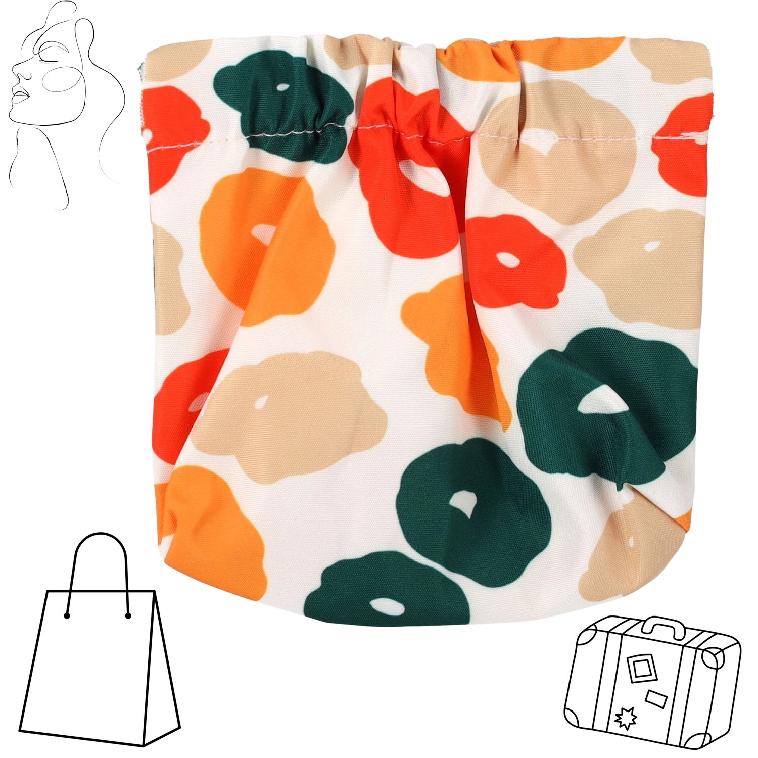 Elegancka kolorystyka z motywem kwiatowym świetnie współgra z różnymi stylami i doda Twoim codziennym stylizacjom szyku. Kompaktowy rozmiar umożliwia wygodne przechowywanie w torebce, plecaku lub bagażu podręcznym, a elastyczne ściągnięcie bezpiecznie utrzymuje zawartość na miejscu.