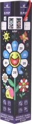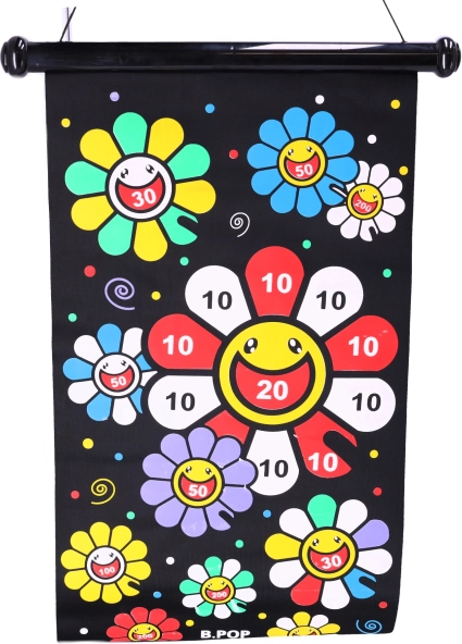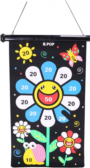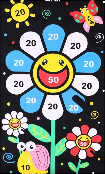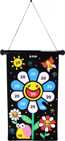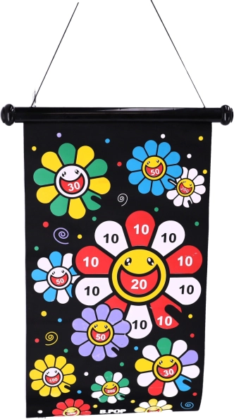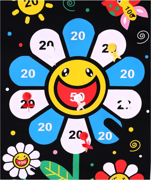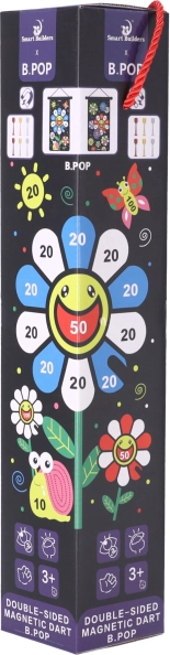 Bezpieczna, dwustronna magnetyczna gra ze strzałkami dostarcza mnóstwa zabawy zarówno dzieciom, jak i dorosłym. Gra polega na precyzyjnym rzucaniu strzałek w oznaczone punkty na planszy. Zestaw zawiera 6 magnetycznych strzałek w trzech kolorach: biały, żółty i czerwony. Czarna tekstylna plansza ozdobiona jest kolorowym kwiatem, co pomaga w ćwiczeniu zręczności i koncentracji. Funkcja zwijania planszy ułatwia jej przechowywanie i transport.