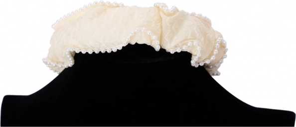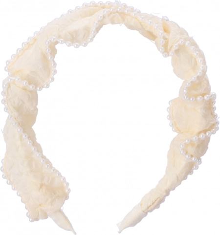 Ta biała opaska z drobnymi perełkami to stylowy dodatek, który podniesie poziom nawet prostego stroju. Tekstylny materiał z efektem marszczenia i subtelne perełkowe obszycie wyglądają elegancko, a zarazem delikatnie. Doskonale komponuje się z rozpuszczonymi włosami, kucykiem i kokiem.