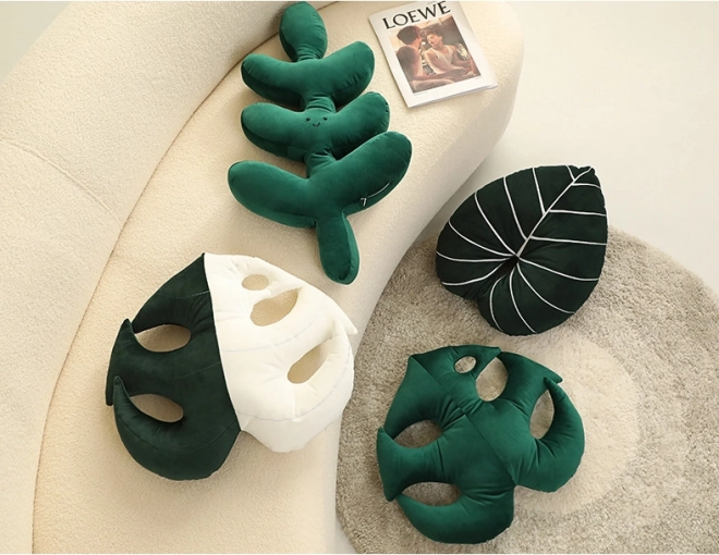 Wprowadź do swojego wnętrza świeży design dzięki dekoracyjnej poduszce inspirowanej tropikalnymi liśćmi. Jest miękka, przyjemna w dotyku i zapewnia wygodne podparcie podczas odpoczynku na sofie lub w fotelu. Eleganckie cięcia przypominające liść monstery stanowią wyrazisty akcent w salonie, sypialni czy gabinecie.