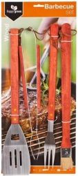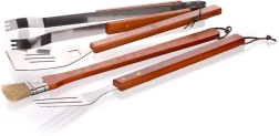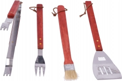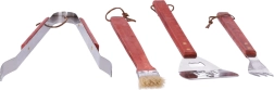 4-częściowy zestaw narzędzi do grilla zawiera szczotkę, szczypce, łopatkę i widelec ze stali nierdzewnej. Zestaw obejmuje podstawowe narzędzia potrzebne do grillowania. Narzędzia są wyposażone w oczko do zawieszenia.
