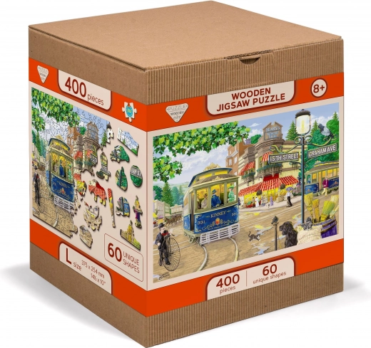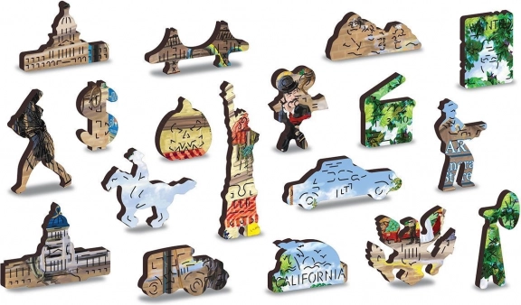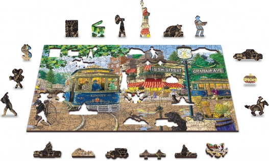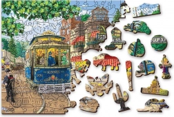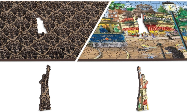 - Unikalne puzzle z laserowo ciętego drewna od WOODEN CITY zawierają specjalnie ukształtowane elementy w formie zwierząt, budynków lub przedmiotów.
