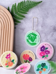 Gąbka jest dostępna w różnych kolorowych wzorach, co dodaje sprzątaniu styl i atrakcyjność.