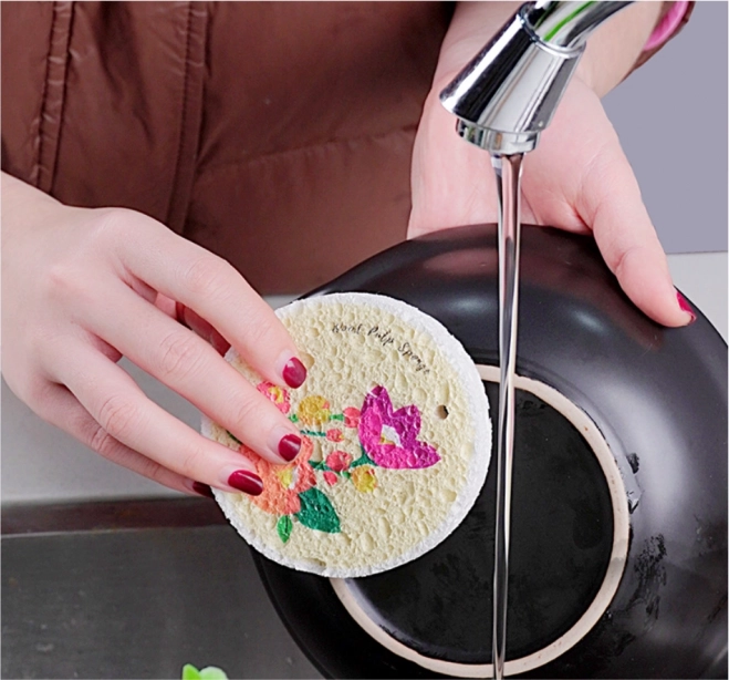 Dzięki zdolności absorpcji wody i tworzeniu piany, gąbka skutecznie usuwa zanieczyszczenia z naczyń.