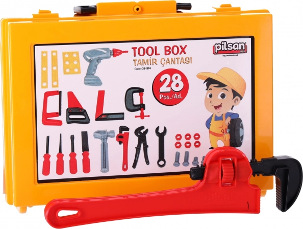 Zestaw narzędzi Pilsan dla małych majsterkowiczów to sposób na rozbudzenie w dzieciach zamiłowania do tworzenia i odkrywania. Zawiera wszystkie potrzebne narzędzia, takie jak wiertarka, śrubokręt, piłka, klucz, młotek i szczypce, które pozwalają realizować wiele pełnych przygód zabaw. Powtarzalne używanie narzędzi wspiera naukę społeczną i rozwój umiejętności.