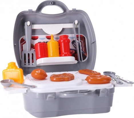 Ten zestaw jest idealny dla każdego małego kucharza, który marzy, by zostać mistrzem grilla, nawet gdy na dworze jest pochmurno. Cały zestaw łatwo zamyka się w walizce, dzięki czemu dzieci mogą zabrać go ze sobą wszędzie. Ten produkt to doskonały pomysł na prezent.