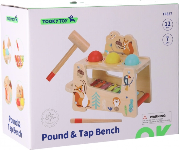 - 2w1: przebijanka + instrument muzyczny (ksylofon i talerz perkusyjny) dla podwójnej porcji zabawy.