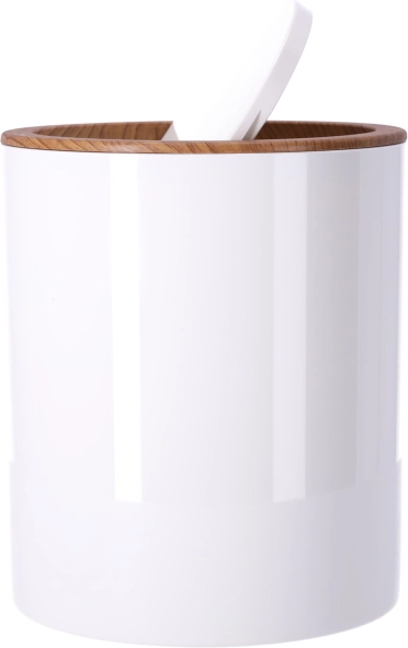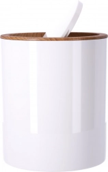 Kompaktowy kosz z uchylną pokrywą umożliwia wygodne wyrzucanie odpadków i pomaga ograniczyć rozprzestrzenianie się zapachów. Minimalistyczny wygląd pasuje do każdej łazienki.