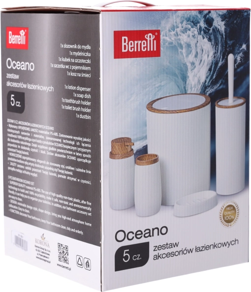 Wytrzymałe tworzywo PS i ABS jest lekkie, solidne i idealne do wilgotnego środowiska. Kosz z uchylną pokrywą podnosi higienę i ogranicza rozprzestrzenianie się zapachów, szczotka WC przechowywana jest w dyskretnym stojaku, a dozownik do mydła uzupełnisz w mgnieniu oka. Wszystko zaprojektowane z myślą o codziennym komforcie i długotrwałym użytkowaniu.