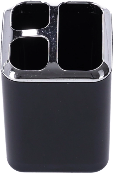 Praktyczny kubek z wieloma przegródkami utrzyma szczoteczki, pastę i drobiazgi w porządku w jednym miejscu. Metalowy akcent i błyszcząca powierzchnia dopełnią nowoczesne łazienki i ułatwią utrzymanie.
