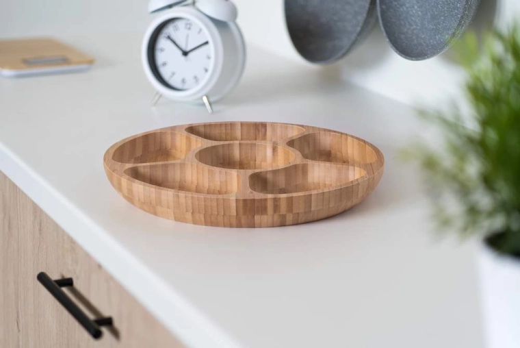 Dzielenna miska Brillante z naturalnego bambusa jest idealna do serwowania różnych przysmaków. Dzięki drewnianym przegrodom możesz podawać na jednej misie kilka rodzajów smakołyków.