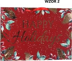Torba prezentowa Happy Holidays o wymiarach 42x12x31 cm z różnymi wzorami to świąteczny i praktyczny sposób pakowania bożonarodzeniowych upominków. Oto kilka informacji o niej: