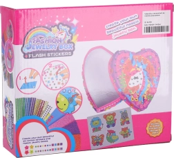 Pudełko w kształcie serca ma namalowane liczby, na które nakleja się odpowiednie naklejki.