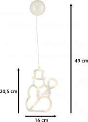 Zawieszana dekoracja LED w kształcie bałwanka rozświetli Twoje okno ciepłym białym światłem i stworzy przytulną, świąteczną atmosferę. Dzięki zasilaniu bateryjnemu umieścisz ją gdziekolwiek bez potrzeby gniazdka, a prosty montaż na przyssawkę zapewni szybkie i pewne mocowanie.