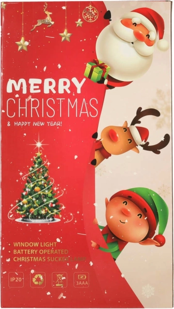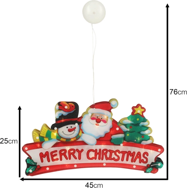 Ta urocza świąteczna dekoracja LED z motywem Świętego Mikołaja, bałwanka i choinki wprowadza świąteczną atmosferę do każdego wnętrza. Łatwo ją przymocować za pomocą przyssawki i jest zasilana bateriami, co pozwala na swobodne umieszczenie bez zbędnych kabli.
