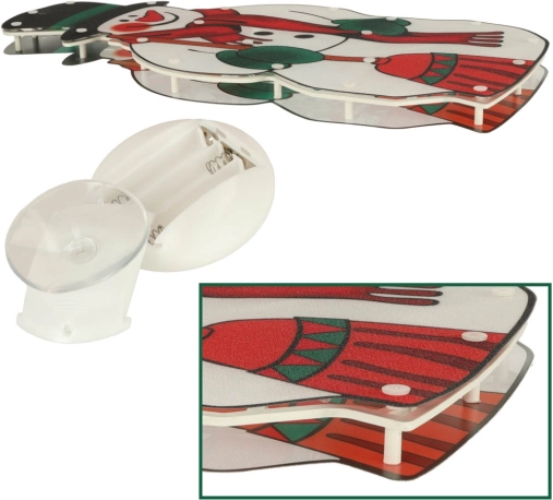 Ta wisząca dekoracja LED z bałwankiem jest idealna do zdobienia okien, drzwi lub gładkich powierzchni we wnętrzach. Lekka konstrukcja i przyssawka umożliwiają szybkie i bezpieczne mocowanie bez wiercenia. Zasilanie 3× bateriami AAA (brak w zestawie) gwarantuje elastyczne umiejscowienie w dowolnym miejscu w domu.