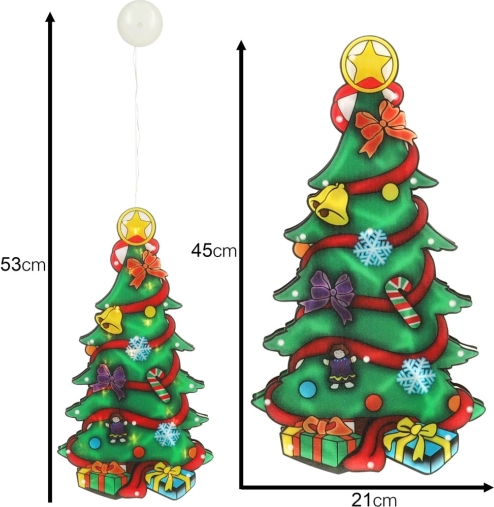 Ta wisząca dekoracja LED z motywem udekorowanej choinki jest idealna do świątecznego wystroju pokoju dziecięcego i salonu. Zasilanie bateryjne (3× AAA) oraz łatwy montaż na przyssawkę zapewniają szybkie umieszczenie bez wiercenia i kabli. Pokrywa komory baterii jest zamykana dla większego bezpieczeństwa.