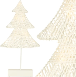 Ozdobna choinka z plecionego materiału emitująca ciepłe światło, doskonała do świątecznych aranżacji.
