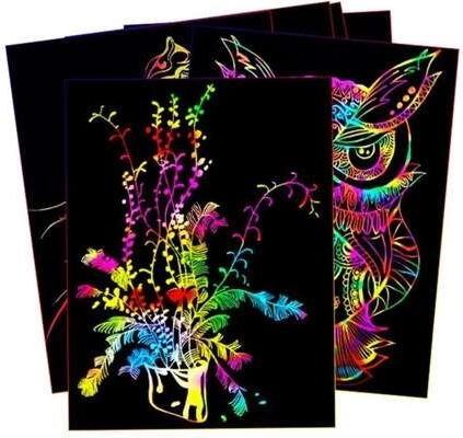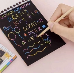 Zestaw kart do zdobienia to kreatywna i zabawna aktywność dla dzieci, która pobudza ich wyobraźnię. Zawiera 10 kartek oraz bezpieczny drewniany rysik, dzięki któremu dzieci mogą tworzyć własne obrazki bez ryzyka zranienia.