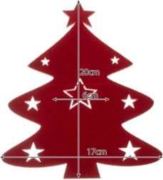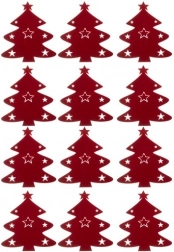 Stwórz na swoim stole magię Świąt z tymi *świątecznymi dekoracjami* na sztućce. Każdy uchwyt jest zaprojektowany w kształcie czerwonej choinki z wycięciami w kształcie gwiazdek, co dodaje elegancji i świątecznego uroku Twojemu stołowi.