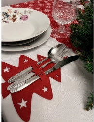 Dekoracyjne akcesoria na sztućce z motywem choinki dodadzą elegancji Twojemu stołowi podczas okresu świątecznego.