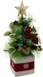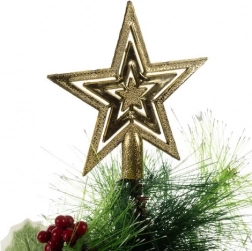 Ta wspaniale ozdobiona sztuczna choinka jest gotowa do użycia zaraz po wyjęciu z opakowania. Elegancki design z imitacją śniegu i złotą gwiazdą na szczycie wnosi świąteczną atmosferę do każdego wnętrza. Idealny wybór dla tych, którzy chcą pięknej dekoracji bez wysiłku.