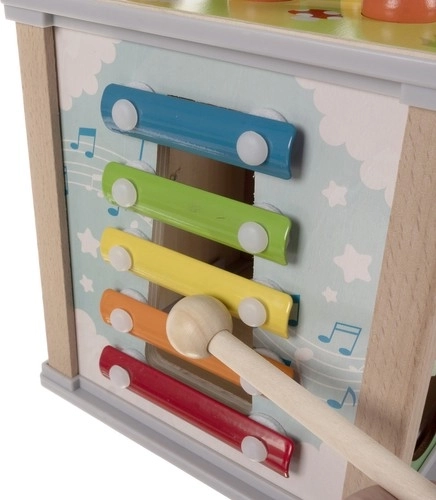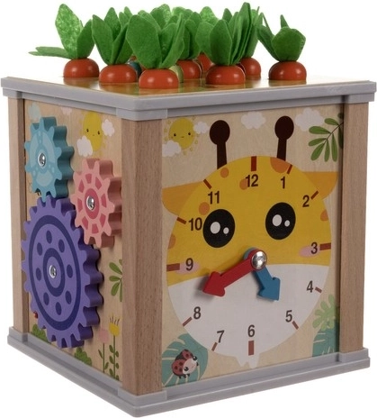 Drewniana edukacyjna kostka to świetne narzędzie do zabawy i nauki. Każda strona kostki oferuje inną aktywność, która pomaga twojemu dziecku rozwijać umiejętności: