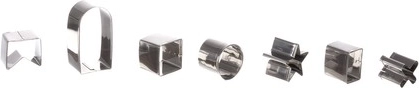 Zestaw wykonany jest z stali nierdzewnej, co zapewnia długowieczność i łatwą konserwację foremek, które są srebrne i estetycznie przyjemne.
