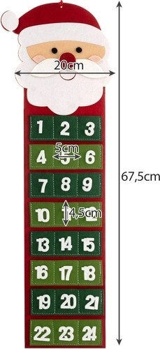 Dzięki wysokiej jakości filcowi kalendarz jest trwały i wielokrotnego użytku, co czyni go ekologicznym i praktycznym wyborem. Czerwona wstążka pozwala na łatwe zawieszenie tam, gdzie chcesz.